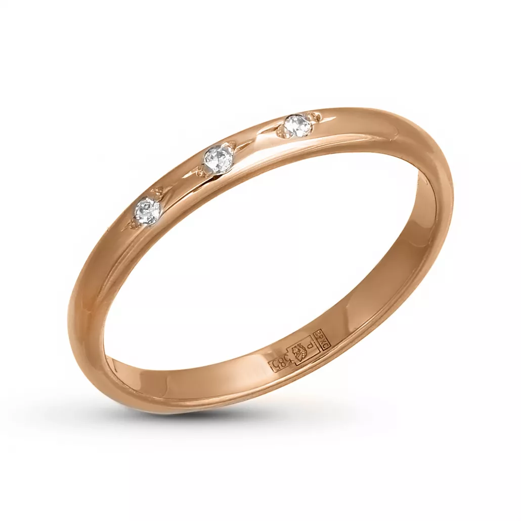 - Кольцо обручальное с фианитом из золота