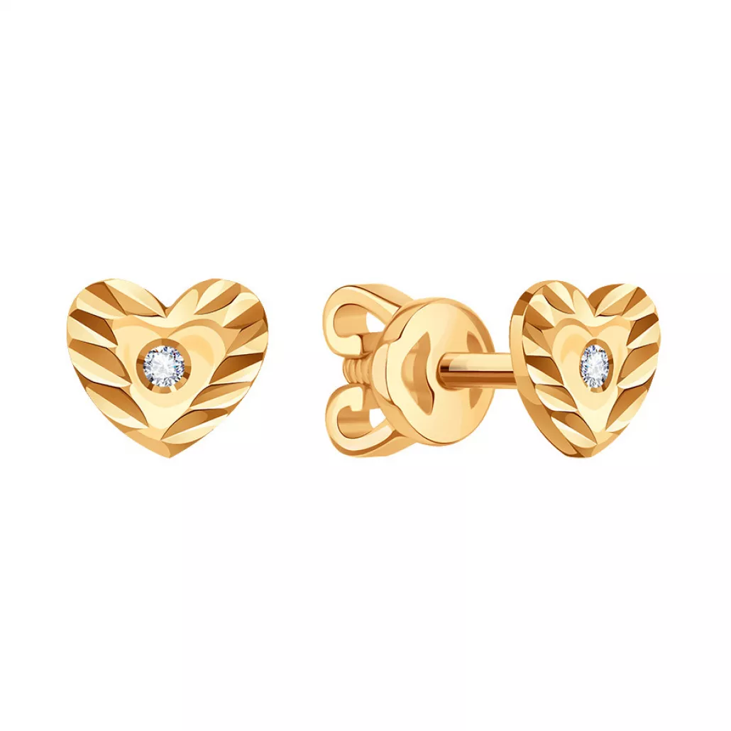 Пусеты с фианитом из золота