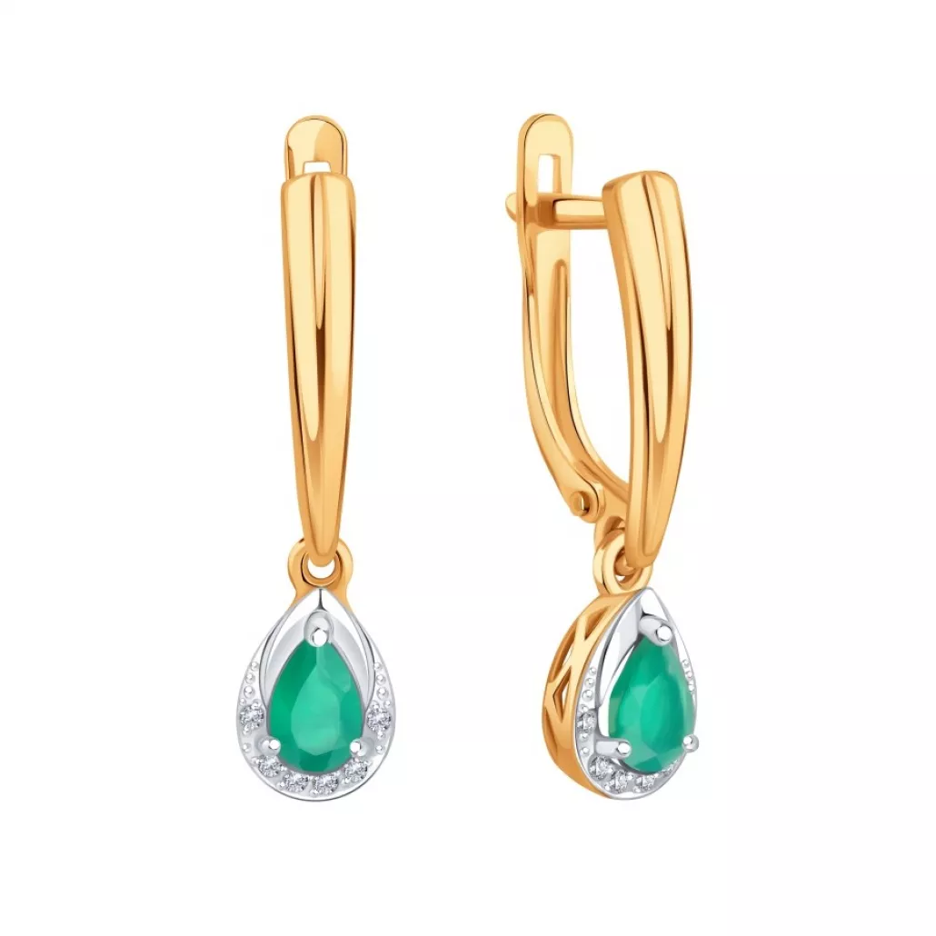 Серьги с агатом и фианитом из золота