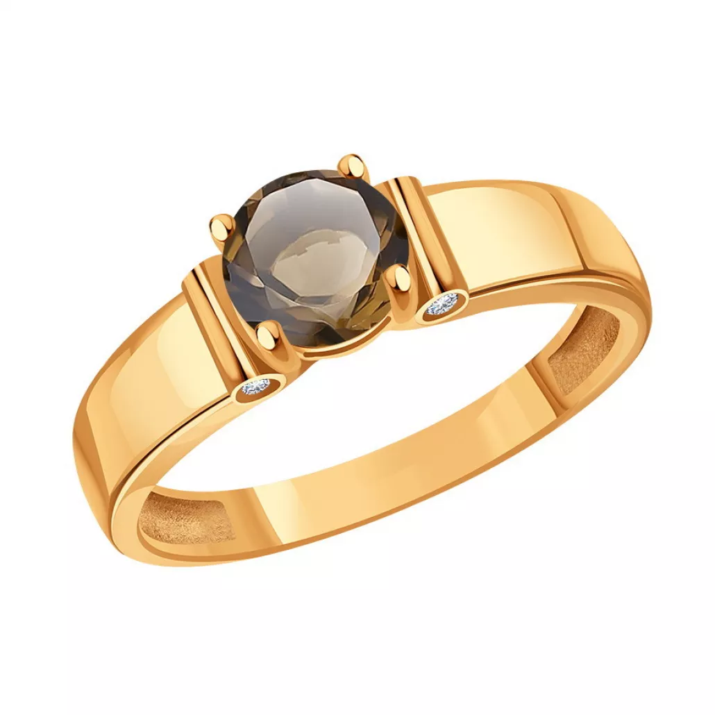 - Кольцо с раухтопазом и фианитом из золота