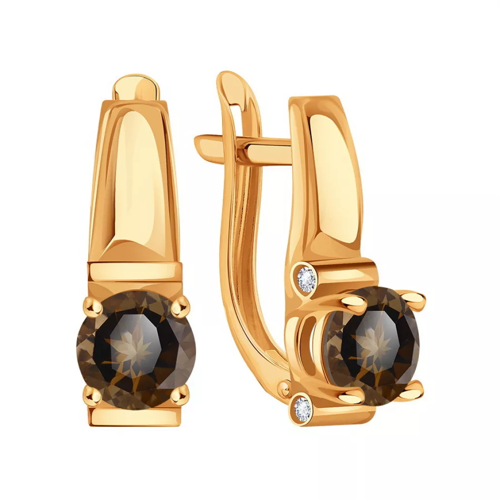 Серьги с фианитом и раухтопазом из золота